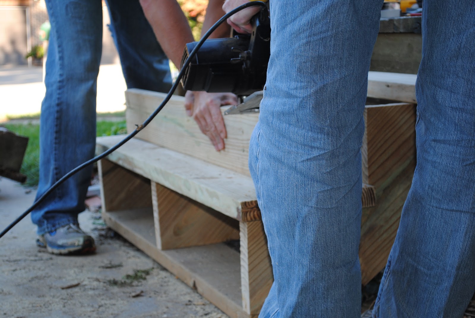Lawman recruited his buddy, Seth, to come help. Seth used to work on a construction crew so the guy is quite handy with a saw and drill. Two hours and the front steps were good as new. I like how we pay Seth -- send him home with food. He took Cheeseburger Soup and Homemade Beer Bread fresh from the oven. He assured me it wouldn't last long. Single guys love receiving home cooked goodness. I love having new steps.
